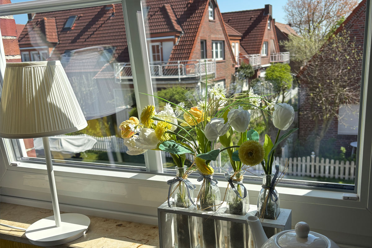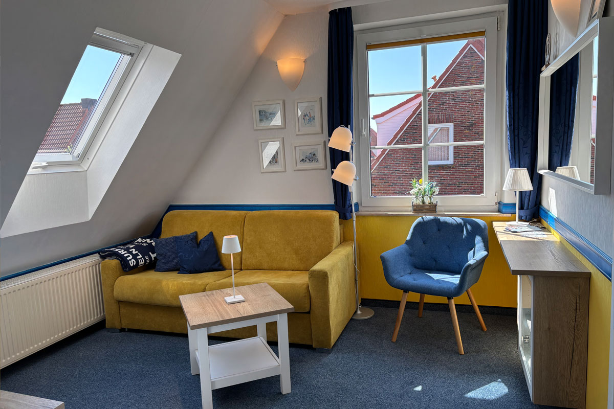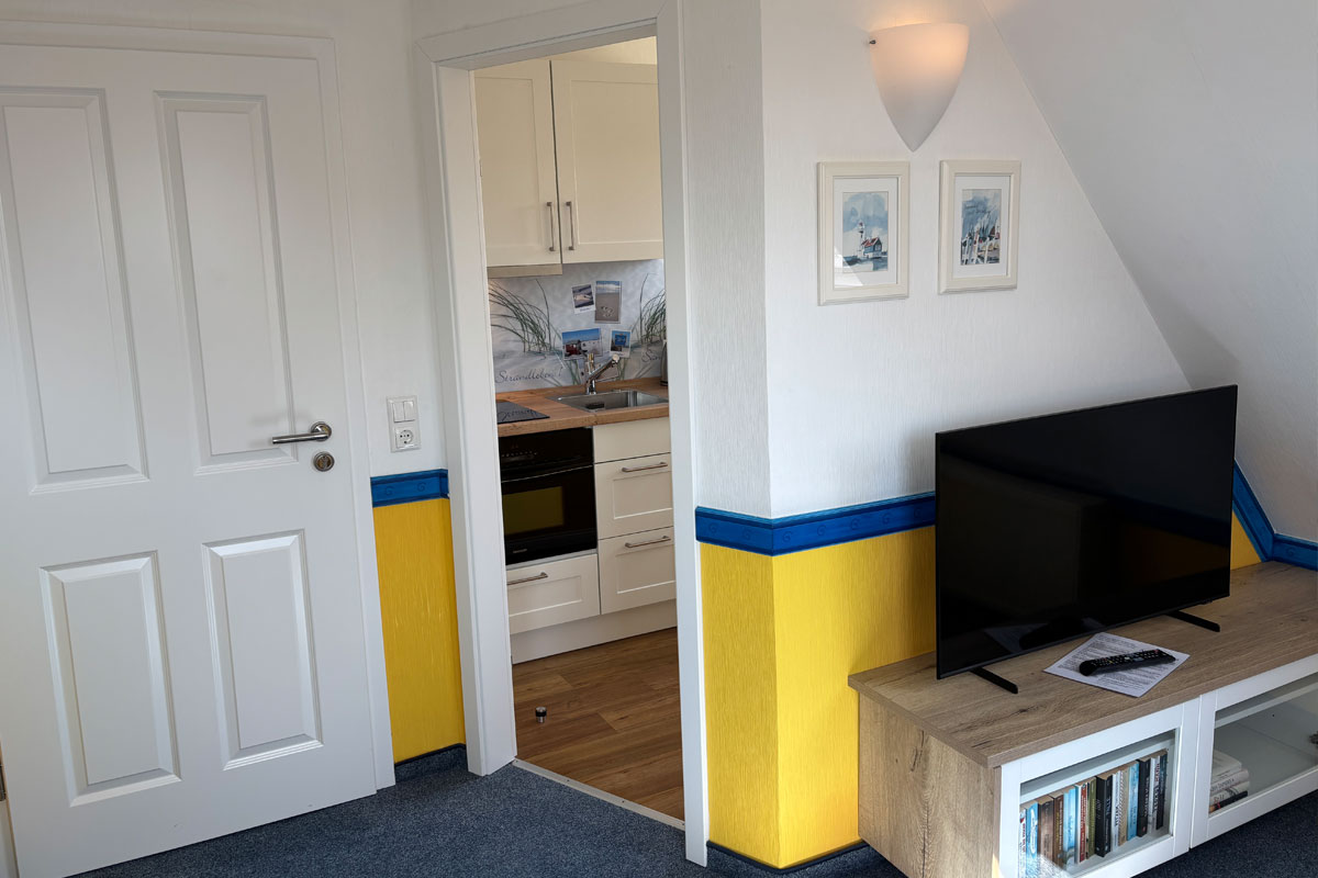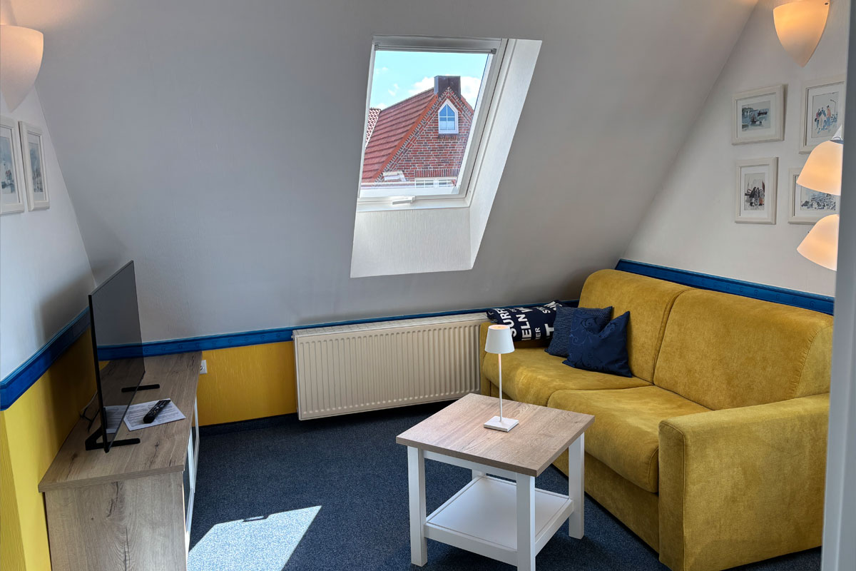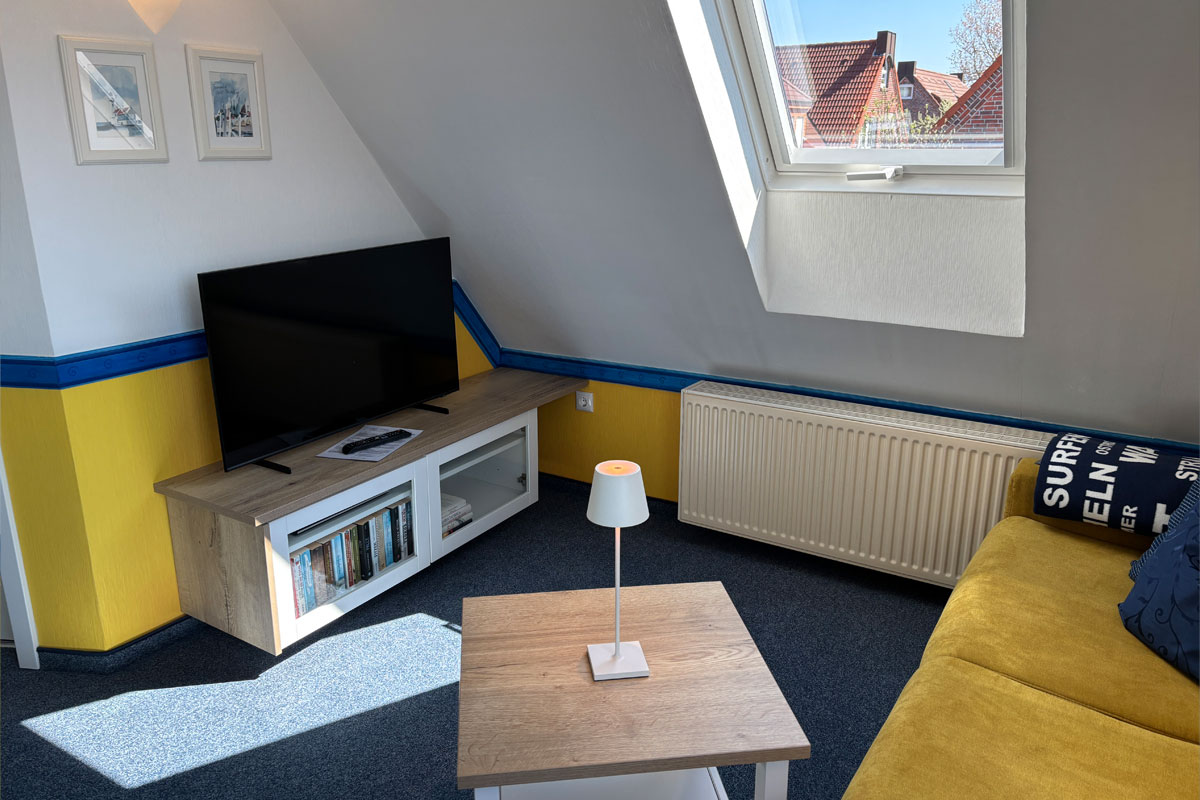 Die Ferienwohnung Kiewitt befindet sich im Dachgeschoss unseres Akkermanntje und überzeugt durch ihre gemütliche Atmosphäre. Die leichte Dachschräge verleiht der Wohnung ihren besonderen Charme und sorgt für ein behagliches Wohngefühl.