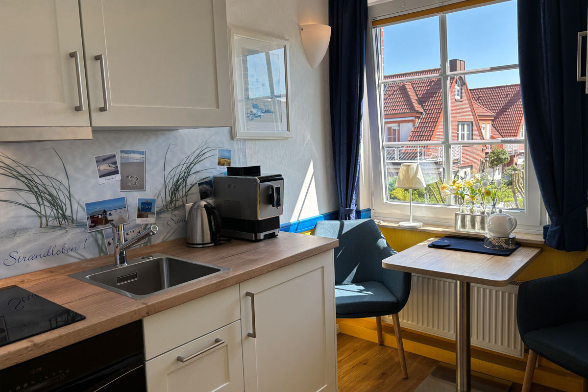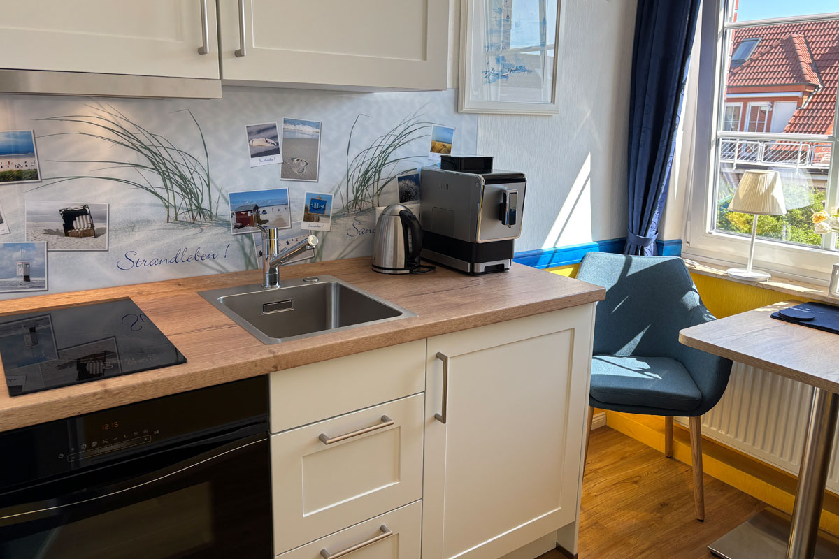 Die integrierte Küchenzeile ist praktisch ausgestattet und ermöglicht Dir eine flexible Selbstversorgung. Deinen ersten Kaffee kannst Du ganz entspannt direkt in Deiner Wohnung genießen.