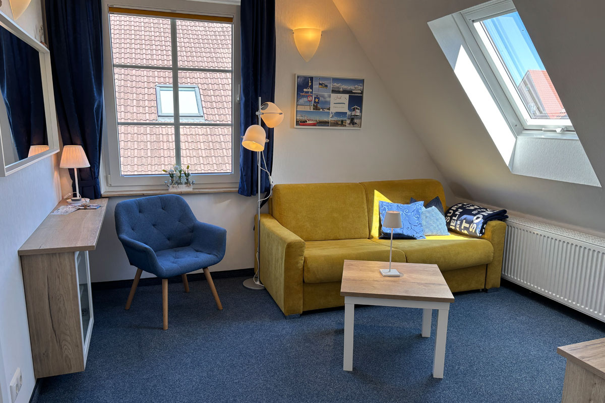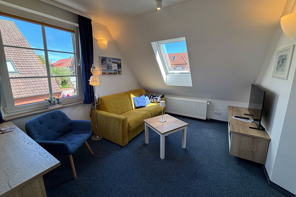 Die Ferienwohnung Lieve liegt ebenfalls im Dachgeschoss des Akkermanntje und zeichnet sich durch ihre helle, freundliche Atmosphäre aus. Sie ist der ideale Rückzugsort für alle, die Ruhe und Erholung auf Juist suchen.